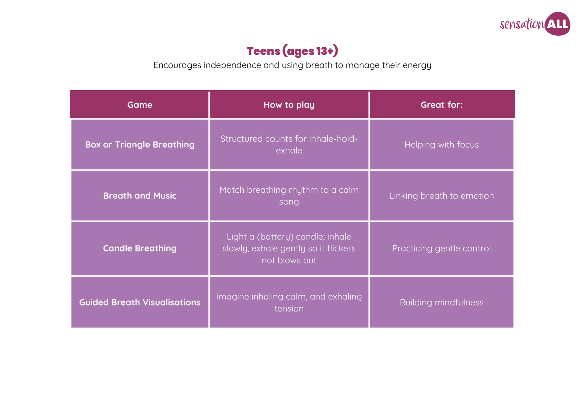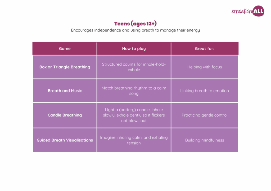 Breathing games are a great way of supporting emotional regulation, especially among children. They: