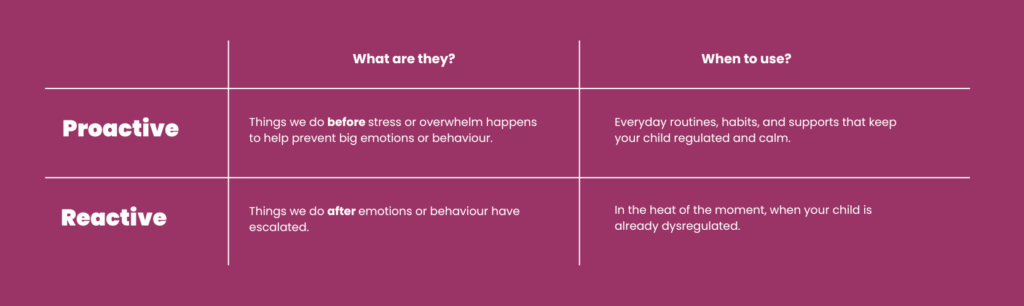 Reactive strategies are essential when emotions are already high. They help calm the body and bring your child back to a state where they can think, learn, and connect again.